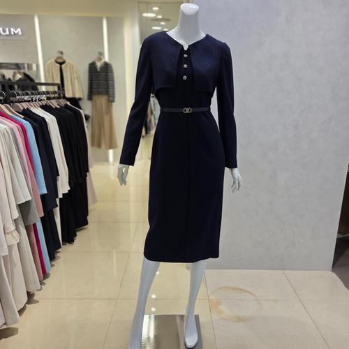[애비뉴투지]엄마옷 둥근 카라 세일러 카라 더블 버튼 플리츠 여성 가을 겨울 벨트 긴팔 롱 원피스 K1230..