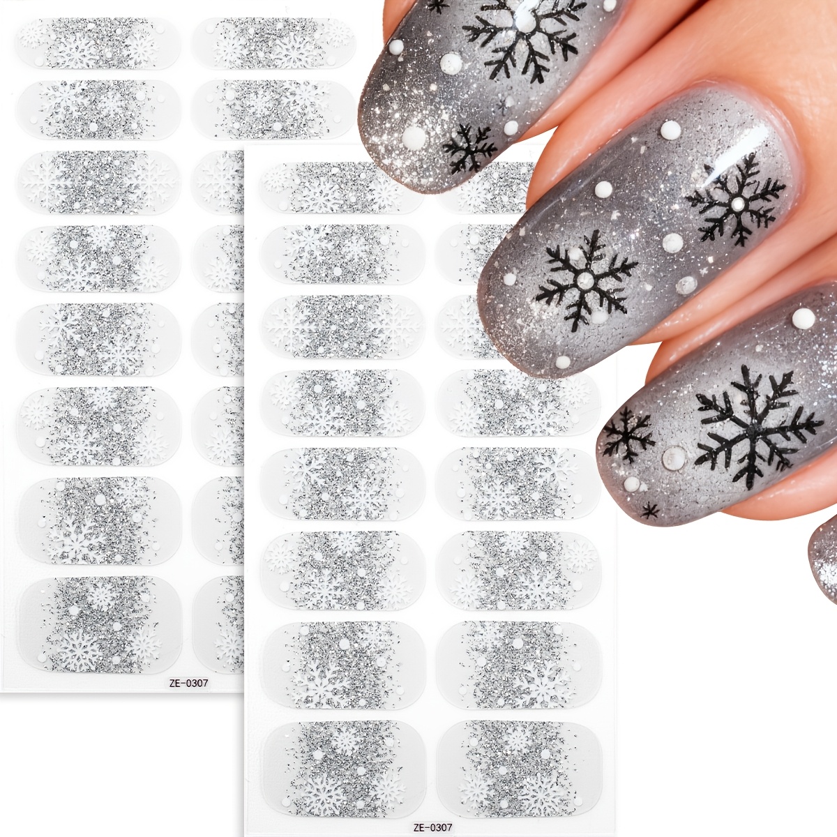 TEMU 긴 아몬드형 블랙 글리터 프레스온 네일 - 손과 발에 적합한 풀커버 인조네일, ABS 팁, 광택감, 겨울용 네일 연장, 유럽 스타일