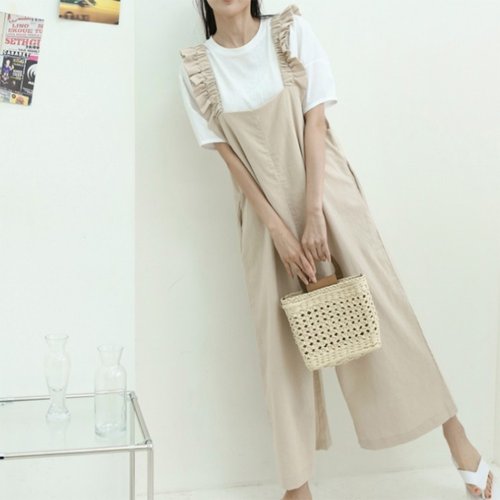 [신상오픈런]여성 프릴 디테일 셔링 끈 나시 점프수트
