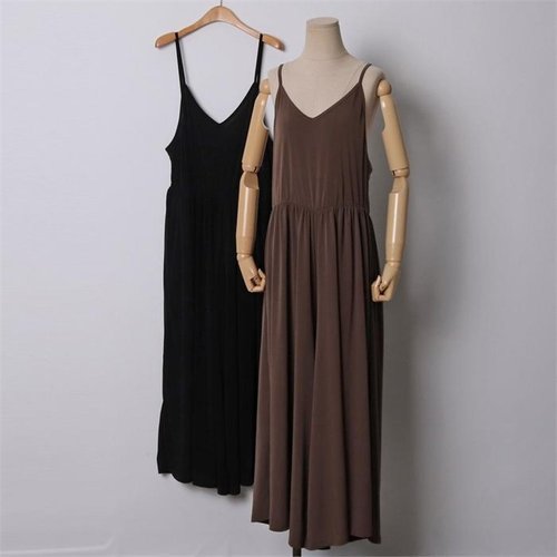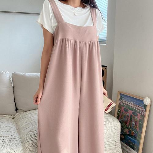 [옷자락]여자 여름 셔링 민소매 와이드 일자 점프수트