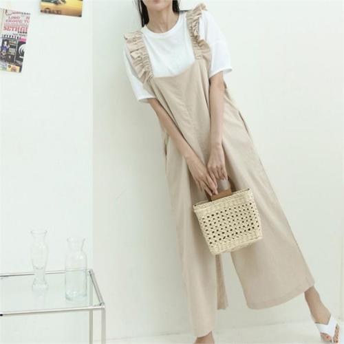 [옷자락] 여자 여름 셔링 민소매 와이드 일자 점프수트