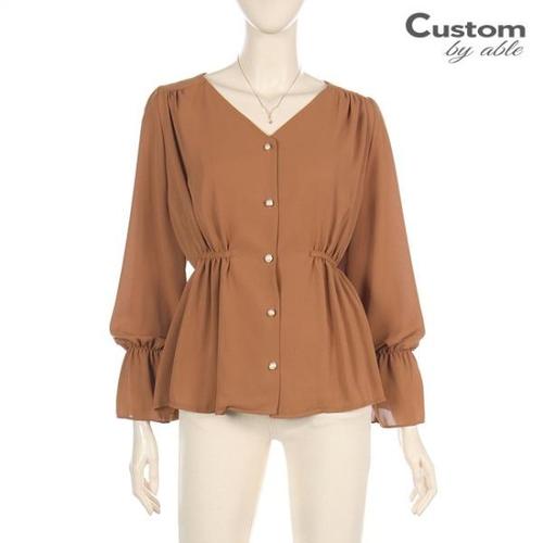[커스텀에이블][★한정수량/패플단독★][CUSTOMABLE]셔링 뒷리본 페플럼 블라우스_[C1908BL183C]