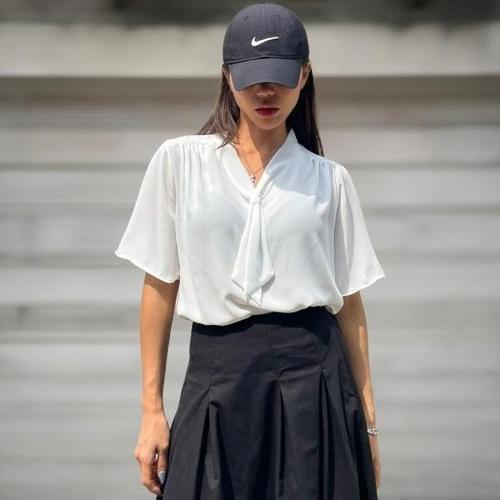 유숀 반팔블라우스 셔링블라우스 라우포블라우스