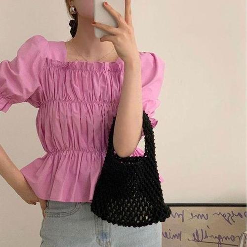 [셀러허브_여성트랜드패션]ONM 세미크롭 로맨틱 밴딩 셔링 여름 블라우스