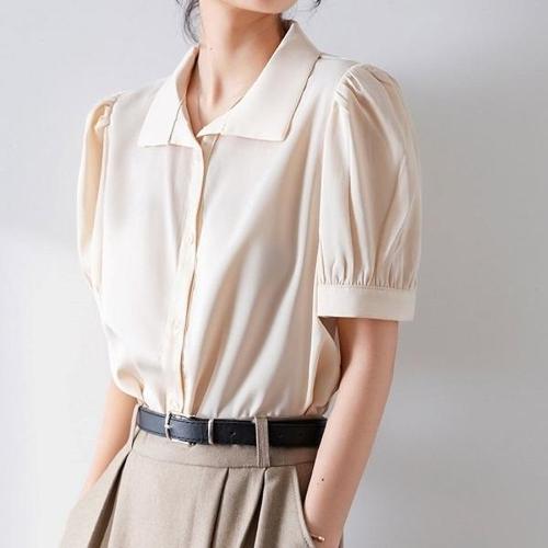 [엄지척]부드러운 여성 여름 퍼프 소매 셔링 셔츠 블라우스_19651930_667501