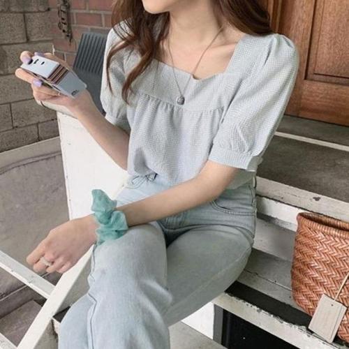 [엄지척]여름 시원한 여자 스퀘어넥 크롭 셔링 반팔 블라우스_19642543_667501