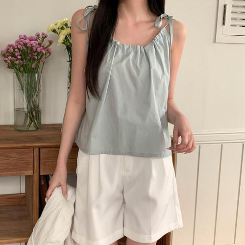 여름 여자 셔링 루즈핏 끈 나시 블라우스 SDW-BLS-SJSC1002195
