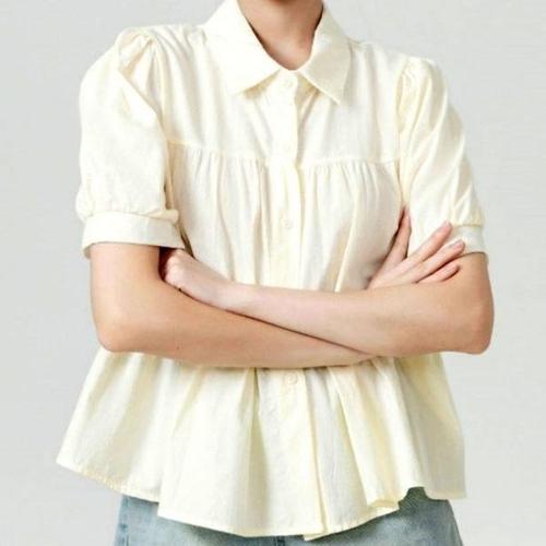 [엄지척]여자 여름 반팔 셔츠 블라우스 남방 퍼프 셔링 코디_19651772_667501