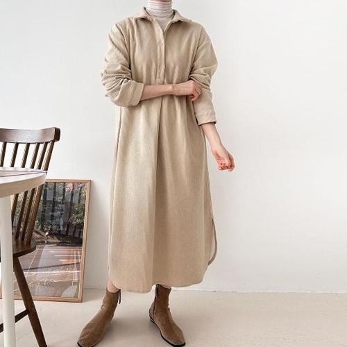 [다잇템][다잇템] 여자 FW 속기모 큰사이즈 남방 코듀로이 반오픈 롱원피스_23387730_588872