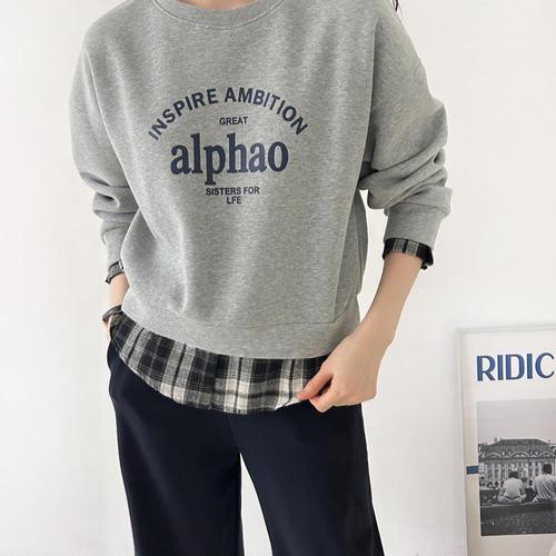 [옷자락]여성 체크무드 오버핏 레이어드 맨투맨 셔츠