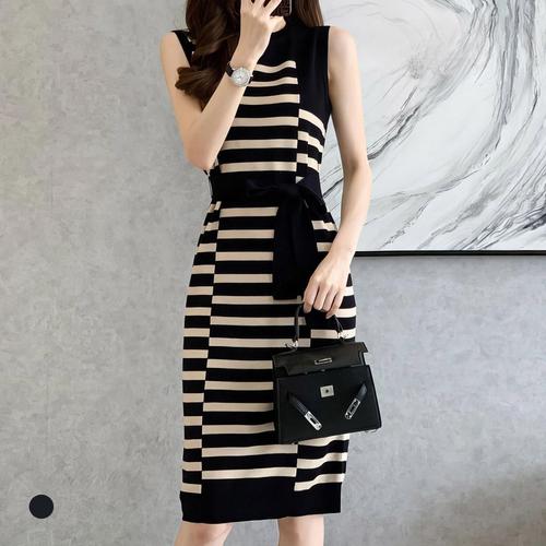 클라셰 패턴포인민소매니트원피스+벨트SET_B4M1143