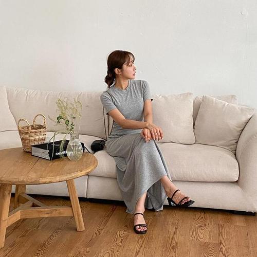 [다잇템]여자 반소매티 드레스 슬리브리스 민무늬 세트 (10287924A)
