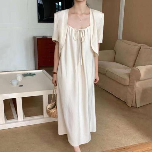 [다잇템]여자 반소매 마원단 슬리브리스 드레스 세트 (10616993A)