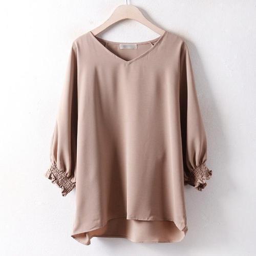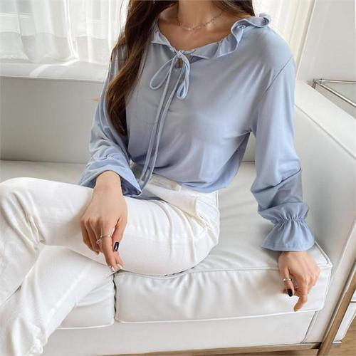 [다잇템]여자 리본보우 편한 민무늬 소매 블라우스 (8255656A)