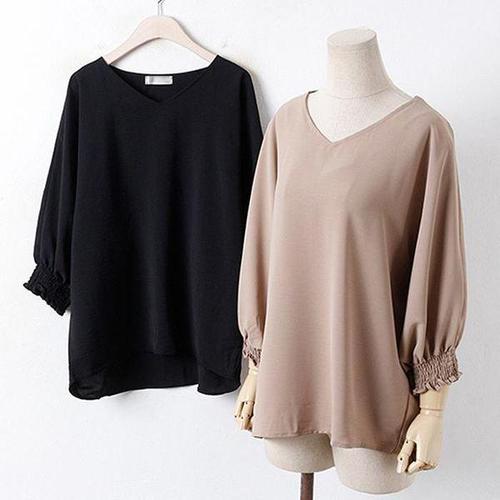 빅사이즈 508 셔링리본반소매블라우스 DSMV118
