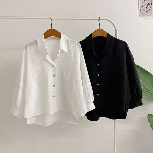 테이븐 카라 셔링 소매 벌룬 루즈핏 셔츠(2color)
