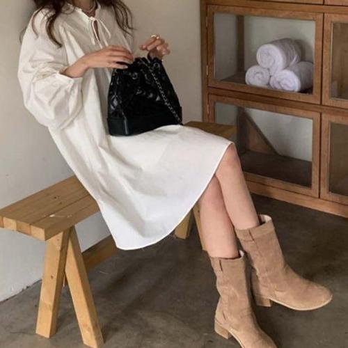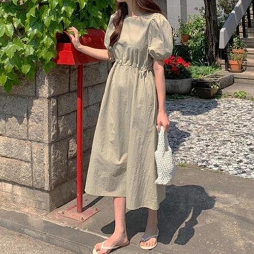 에스알비 라운드넥 퍼프 롱 원피스