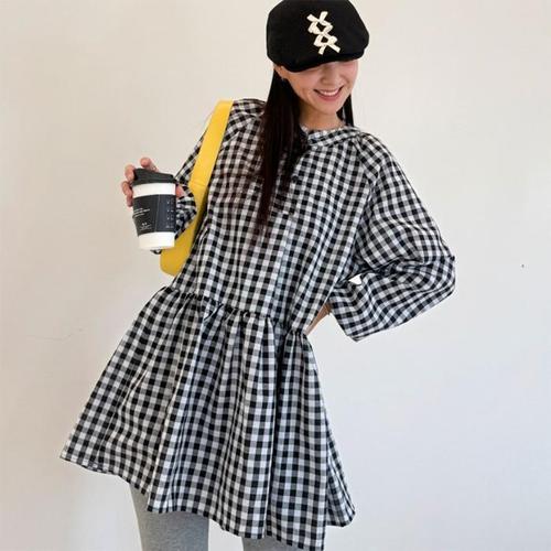 [오조크][오조크(OZOC)] 퍼프 소매 체크 원피스 (택가격 79000원)