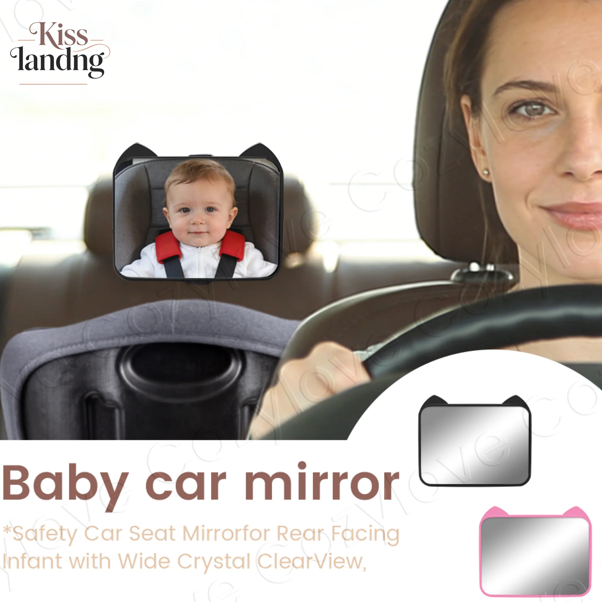 귀여운 고양이 귀 모양 아기 자동차 거울 | 유아용 안전 거울, 2가지 색상 옵션, 깨지지 않는 광각 시야 확보 가능