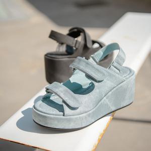 [소보제화]르멜로 스트랩 웨지 플랫 비치 샌들 4cm