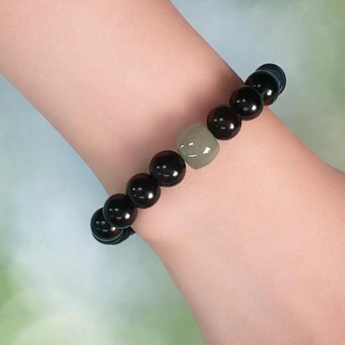 [기타 BRAND]H25 천연화전옥과 흑단의 행운팔찌 소원팔찌 TA3841308