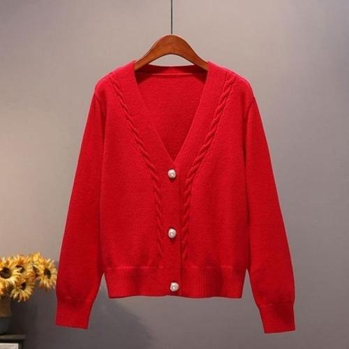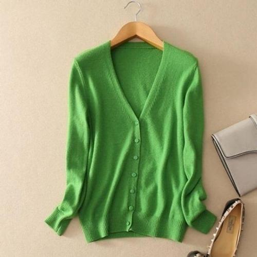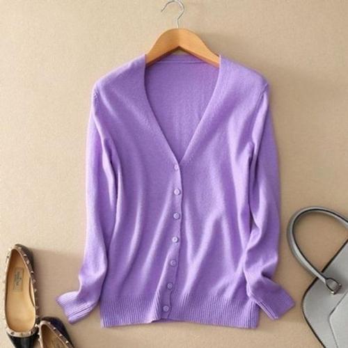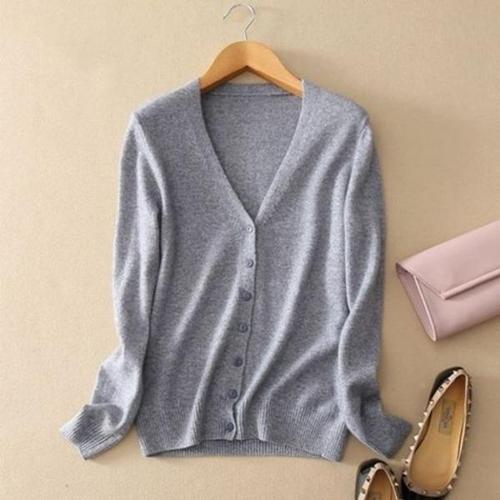 유니픽 여성 가을겨울 양모 가디건 긴팔 기본형 V넥 단추 디자인zdy