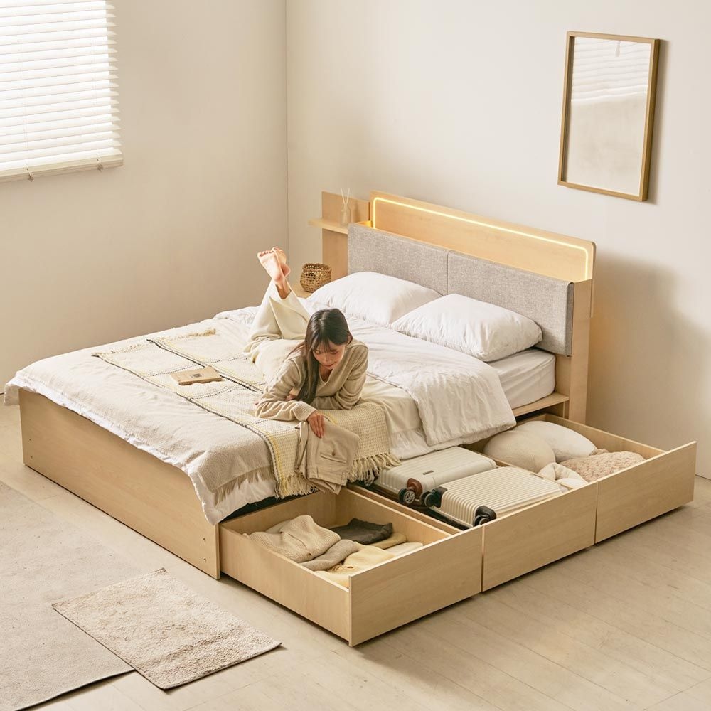 호텔 소피체 LED 빅서랍 수납침대 프레임 세트 SS/Q/K (매트선택)