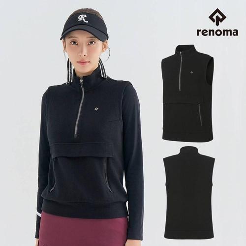 레노마골프 여성 간절기 솔리드 포켓 반집업 조끼 N/7106.