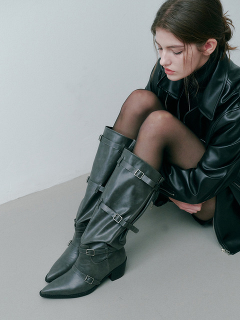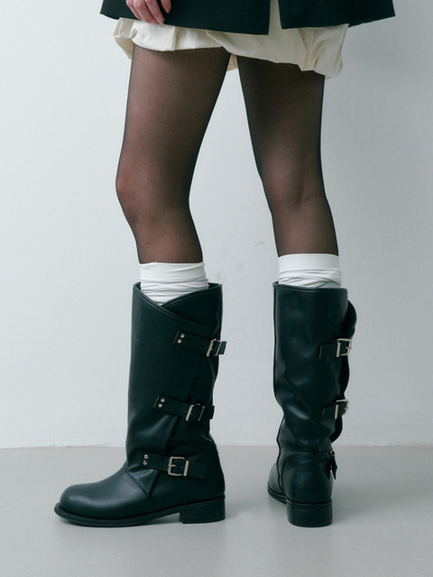 [솔트앤초콜릿] 라운드 토 벨티드 롱부츠 412448001 (4cm/3colors)