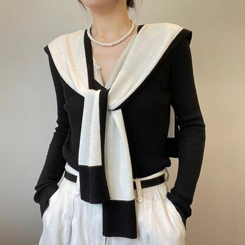 [에이치플러스몰]다용도 니트 목도리 겸 숄 가디건 어깨 망토 니트 숄가디건 베스트 예쁜가디건 조끼 여..