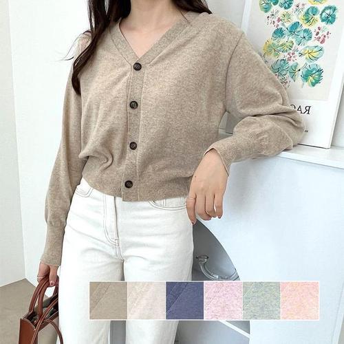 여성 봄 가을 니트 브이넥 기본 가디건 패션 숏가디건