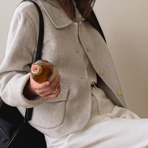 POMTOR 가을겨울 여성 캐주얼 루즈핏 솔리드 미니멀 칼라넥 모직 숏 자켓