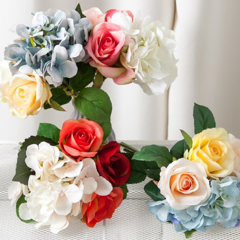 장미 조화 꽃 꽃다발 수국어렌지 24cm 4컬러 인테리어 장식 셀프 웨딩