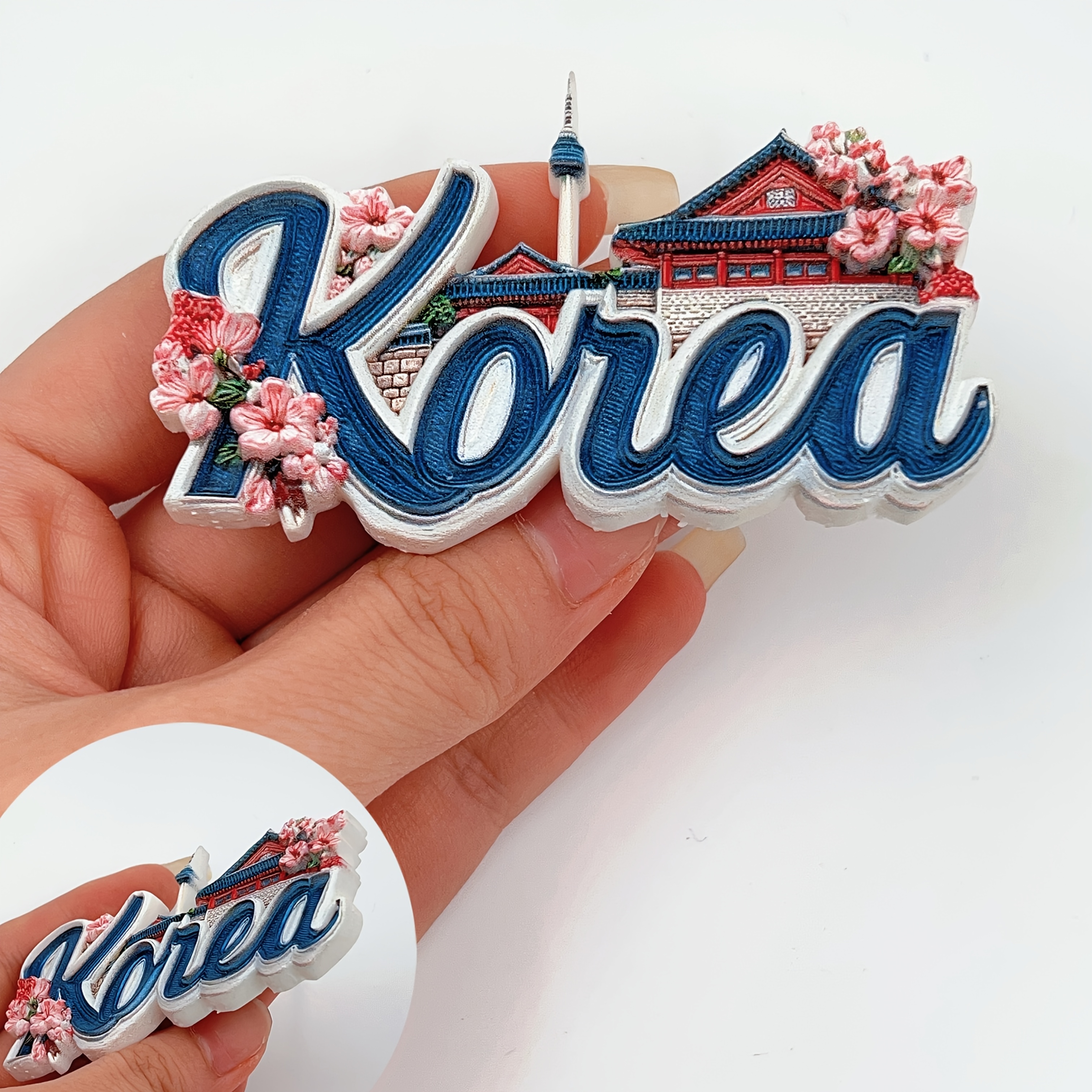 TEMU 1개 한국 알파벳 냉장고 자석 - 한국에 오신 것을 환영 3D 레진 3D 자석 장식 (한국어 텍스트, 한국 건축 & 벚꽃 포함) - 튼튼한 PVC 주방 장식