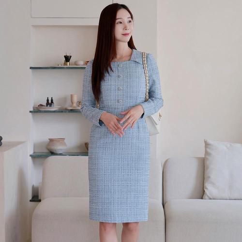 드리다 트위드 스퀘어넥 카라 H라인 빅사이즈 정장 원피스 하객 상견례 오피스룩 모임 연말룩 미시