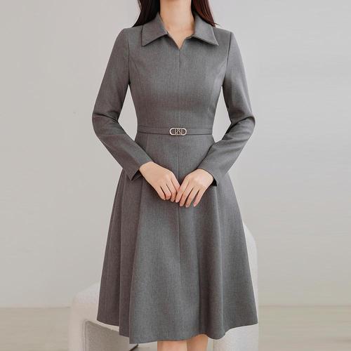 드리다 카라 A라인 플레어 빅사이즈 벨트 정장 원피스 하객 모임 오피스룩 상견례 가을 겨울