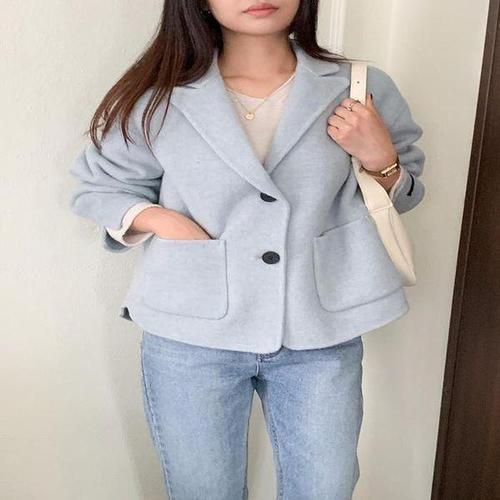 [셀러허브_여성트랜드패션]여자 박시핏 언발 싱글 카라 FW 수제 자켓