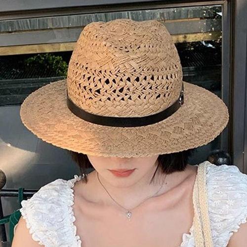 페이퍼 비치 벨트장식 밀짚모자 남녀공용 커플 여행룩 WFHN2DB