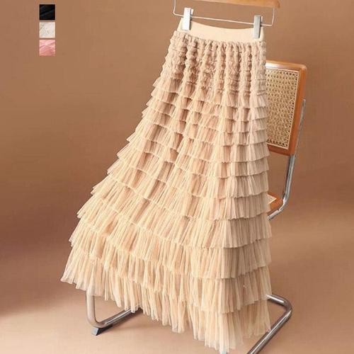 [페이릿][페이릿] 아트 허리밴딩 쉬폰 캉캉 레이어드 무드 롱 샤스커트