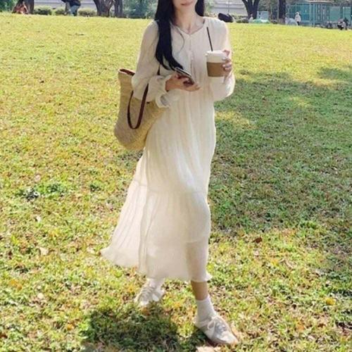슬림 롱원피스 a라인 심플 데일리 여자 여피스 쉬폰 빅사이즈