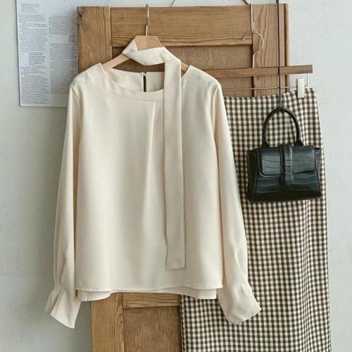 [다잇템][다잇템] 여자 시폰 잔주름 롱슬리브 타이스트랩 출근룩 블라우스_23200233_588872