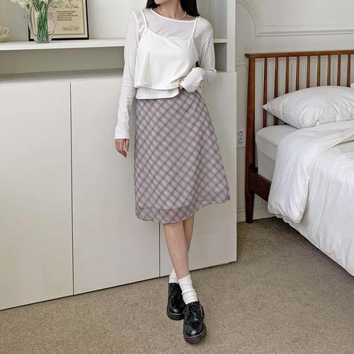 [다잇템]여자 체스 격자 시폰 코디 키치무드 스커트