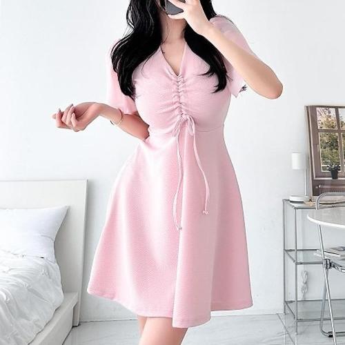 [다잇템][다잇템] 여자 시폰 잔주름 드로우코드 후레아 가슴 SS 미니원피스_18299131_588872
