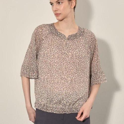로르카 여성 브이넥 버튼 디테일 반팔 루즈핏 기본형 쉬폰 블라우스 M01031824