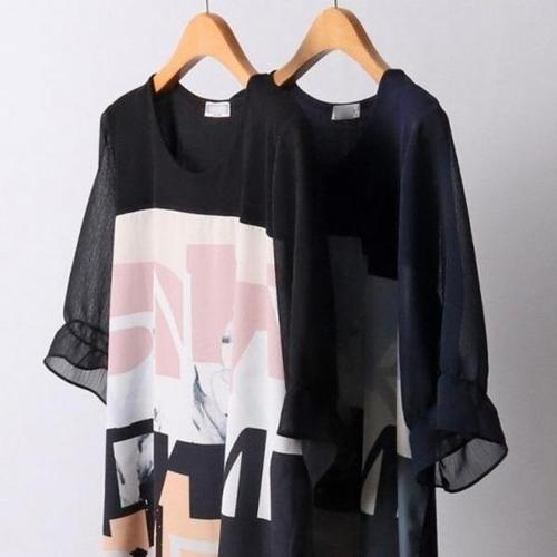 [엄지척]빅사이즈미시옷 쉬폰 반팔티 프린팅 여성큰옷 305I801_19598209_667501