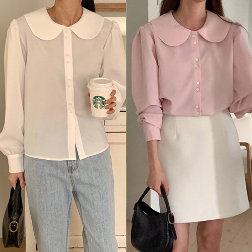 단추 캐릭터 캐쥬얼 니트 블라우스 조끼 와이셔츠 셔츠 남방 원피스:-블라우스단추