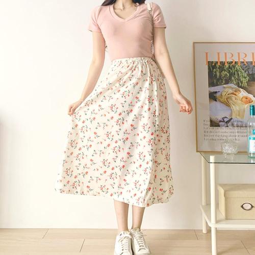 (스타일하우스) 스커트 치마 SK 꽃무늬 밴딩 A라인 여자 쉬폰 롱 바캉스룩