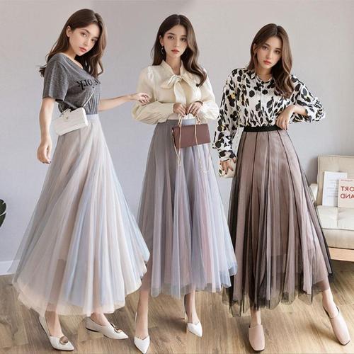 (스타일하우스) 스커트 치마 SK 망사 쉬폰 롱