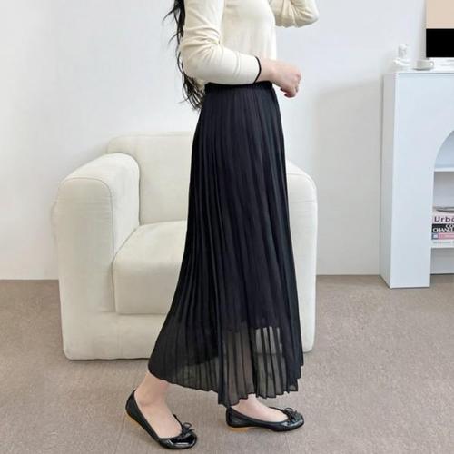 심플 플리츠 타입 여자 허리밴딩 쉬폰 롱스커트주름 쉬스커트 여성하의 밴스커트