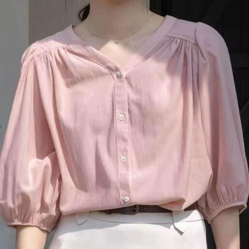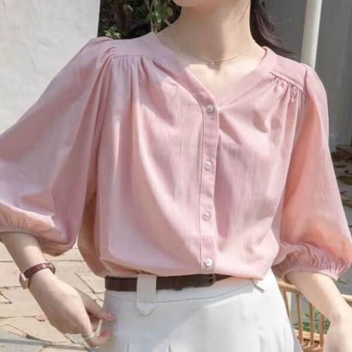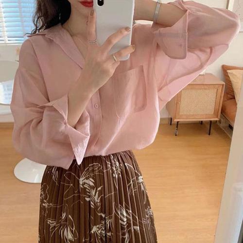 여름 블라우스 감성 셔츠 루즈핏 레이어드 쉬폰 (3uJGG)
